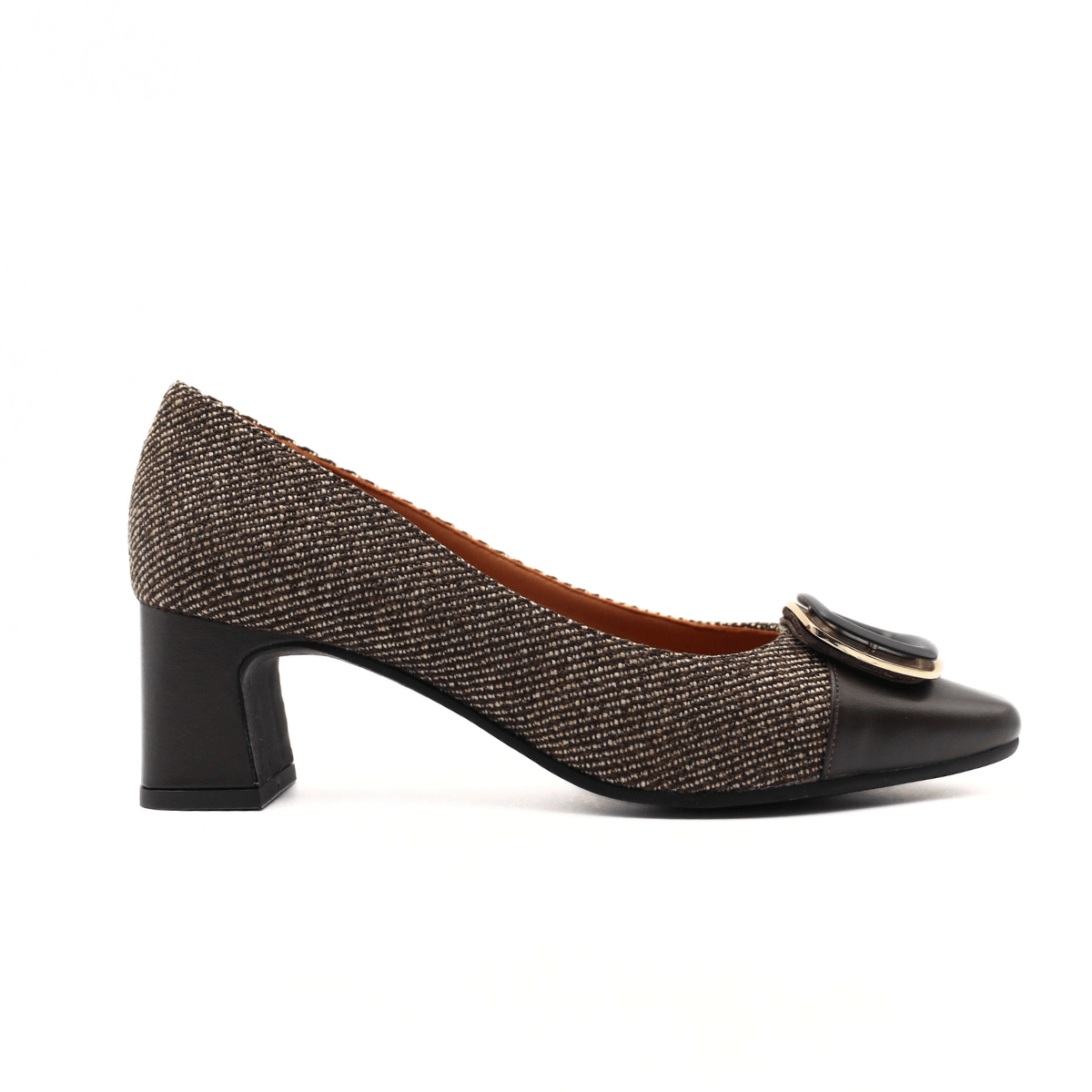 Indossa l'ultima tendenza della moda con le decolletè di MALÙ. Queste eleganti scarpe realizzate in tessuto pied de poule con inserto in pelle marrone e accessorio sul puntale, sono dotate di un comodo interno e soletta in morbida pelle. Un design sofisticato con una suola in gomma.