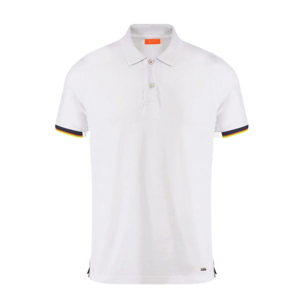 Polo bianca di MARKUP con dettaglio colorato sul polsino e spacchetti fluo.