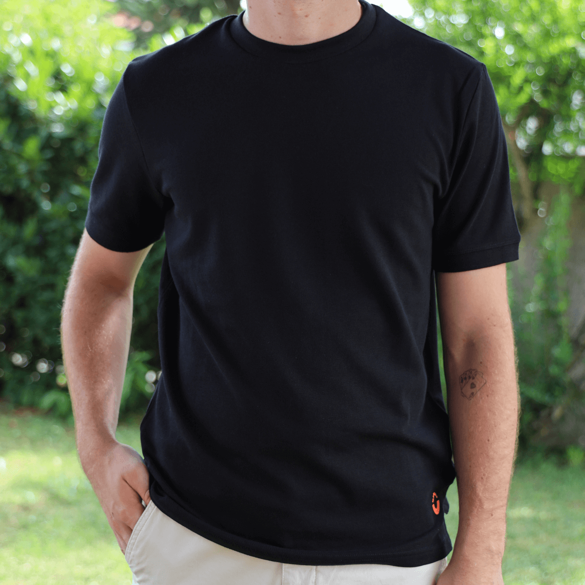 T-shirt, da uomo, di MARKUP. Realizzata in cotone bianco con logo arancione fluo sul fianco, a girocollo.