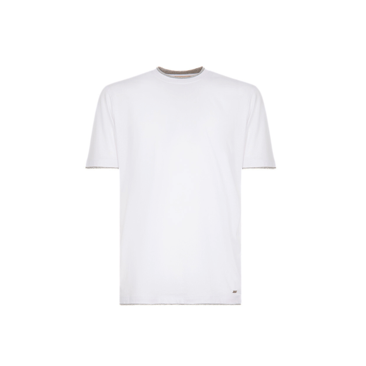 T-shirt bianca di MARKUP. Caratterizzata da rifiniture a contrasto grigie. Composizione: 100% cotone.