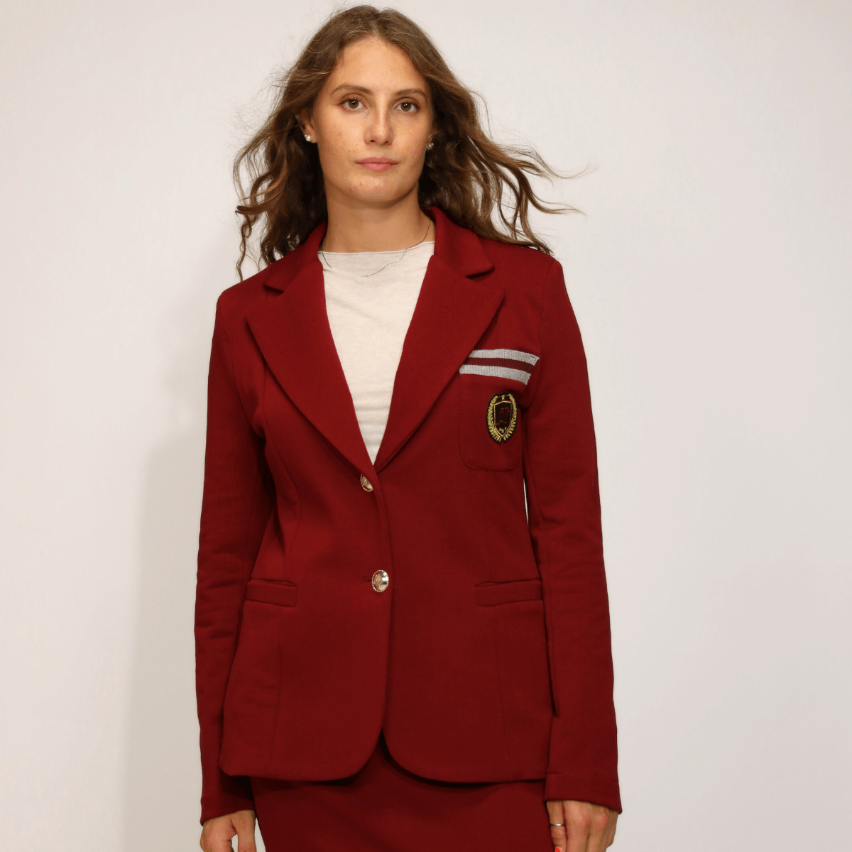 Giacca da donna di MARYLEY in cotone garzato stile college con taschino con stemma sulla parte frontale.