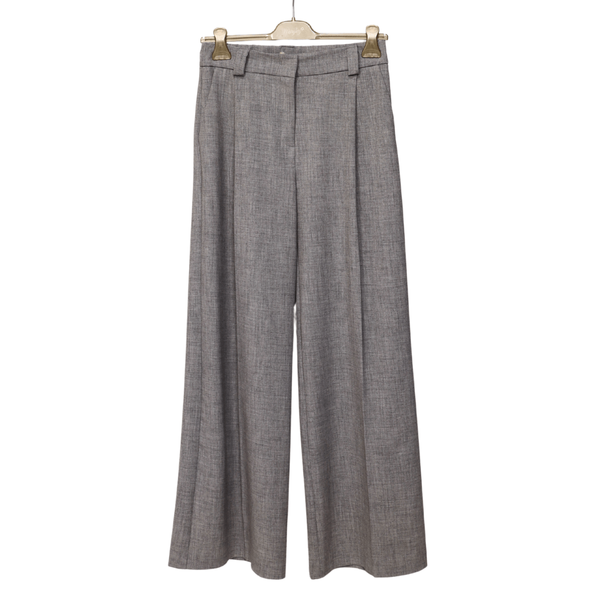 Pantalone ampio e dritto di MARYLEY. Perfetto sia per look da ufficio che per occasioni più formali. Realizzato in tessuto grigio con passanti per la cintura. Chiusura con zip.