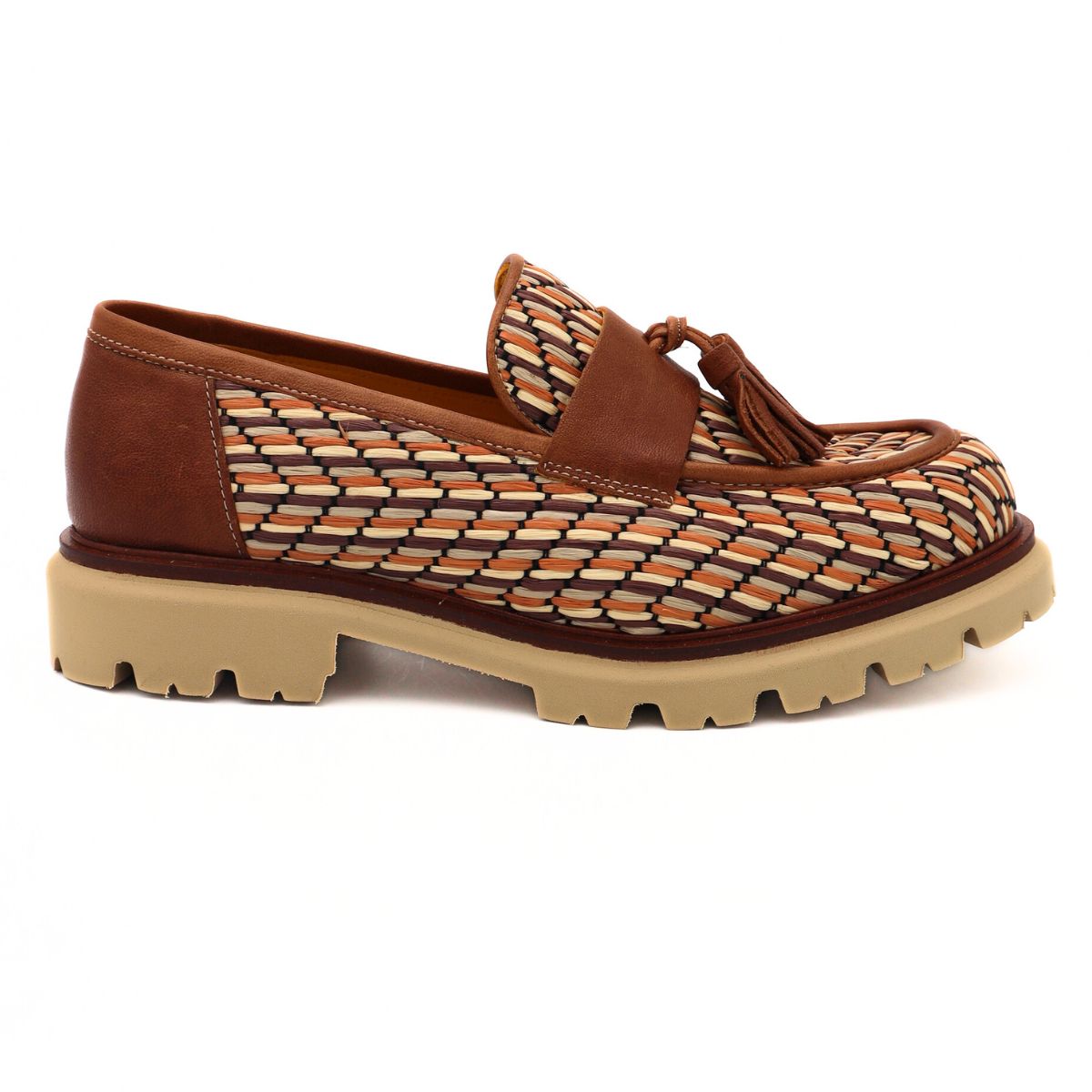 Esaltate il vostro stile con il mocassino, da donna, di MAT20. La tomaia in pelle intrecciata color cuoio presenta un morsetto oro decorativo che aggiunge un tocco di eleganza. Questo mocassino offre un comfort duraturo grazie alla fodera in pelle e alla suola in gomma.