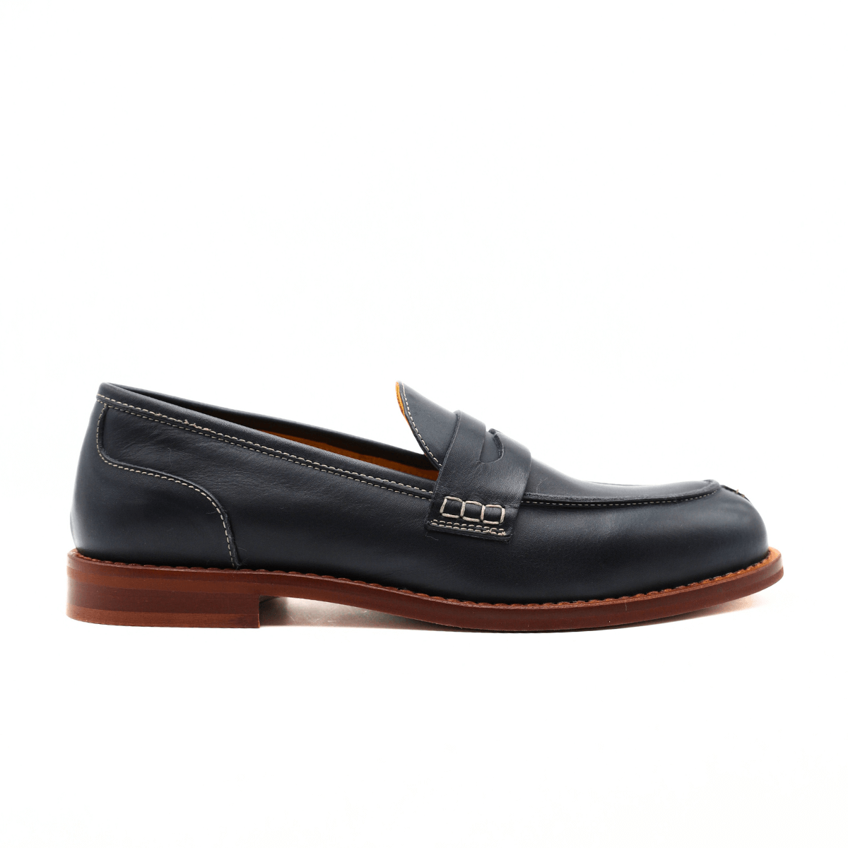 Mocassino di MAT20 realizzato in morbida pelle blu. Interno e sottopiede, non estraibile, foderati in pelle. Suola in cuoio.