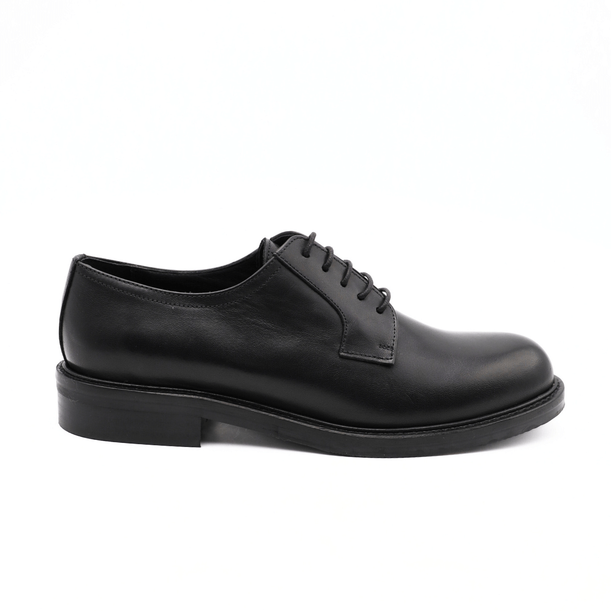 Stringata da donna di MAT20. Tomaia realizzata in pelle nera. Interno e sottopiede, non estraibile, foderati in pelle. Laccio di chiusura. Suola in gomma.