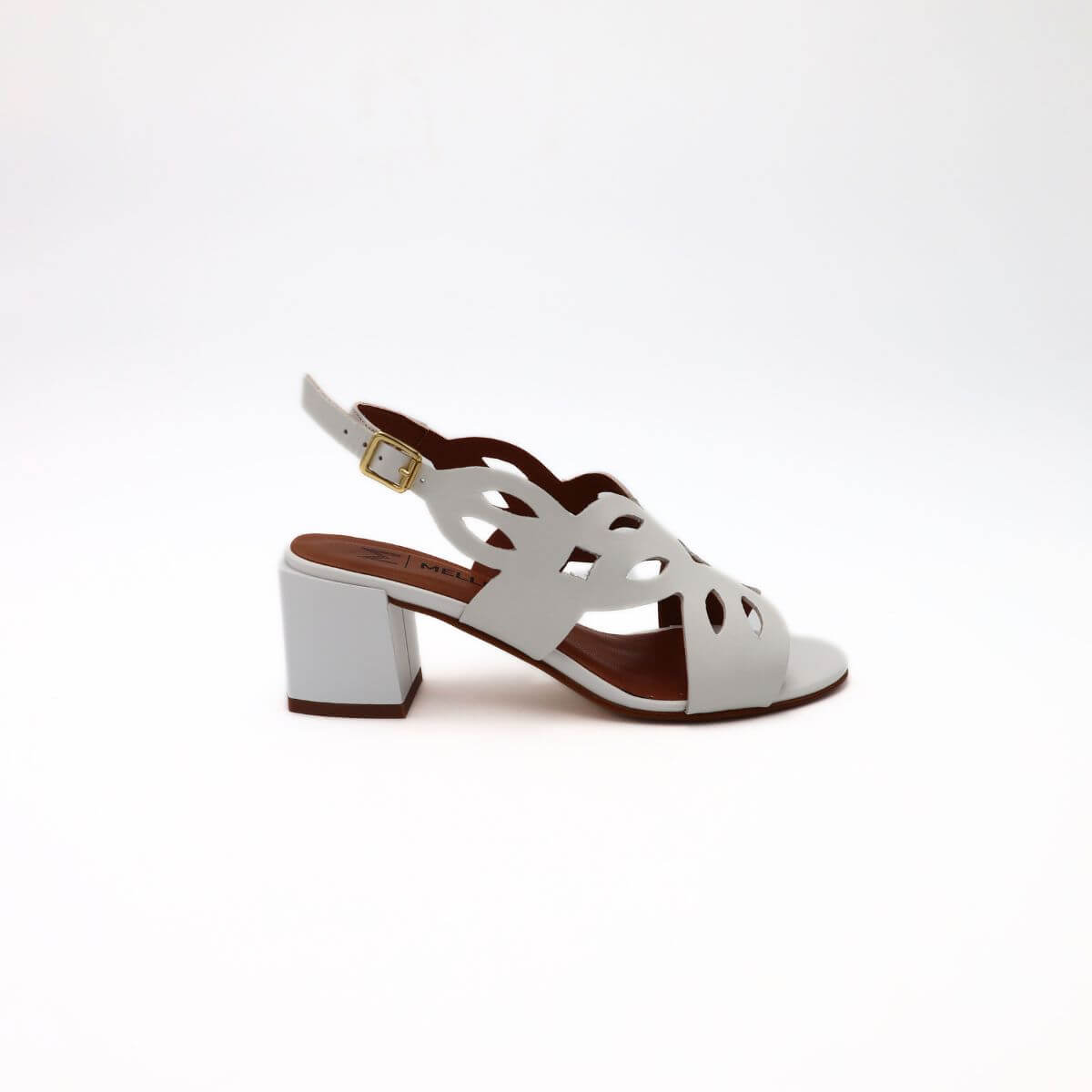 Sandalo alto di MELLUSO. Scarpe realizzate in pelle nappa bianca con cinturino regolabile alla caviglia. Sono dotate di un comodo interno in morbida pelle. Un design sofisticato che le rende uniche con una suola in cuoio. Tacco verniciato bianco, altezza: 6cm