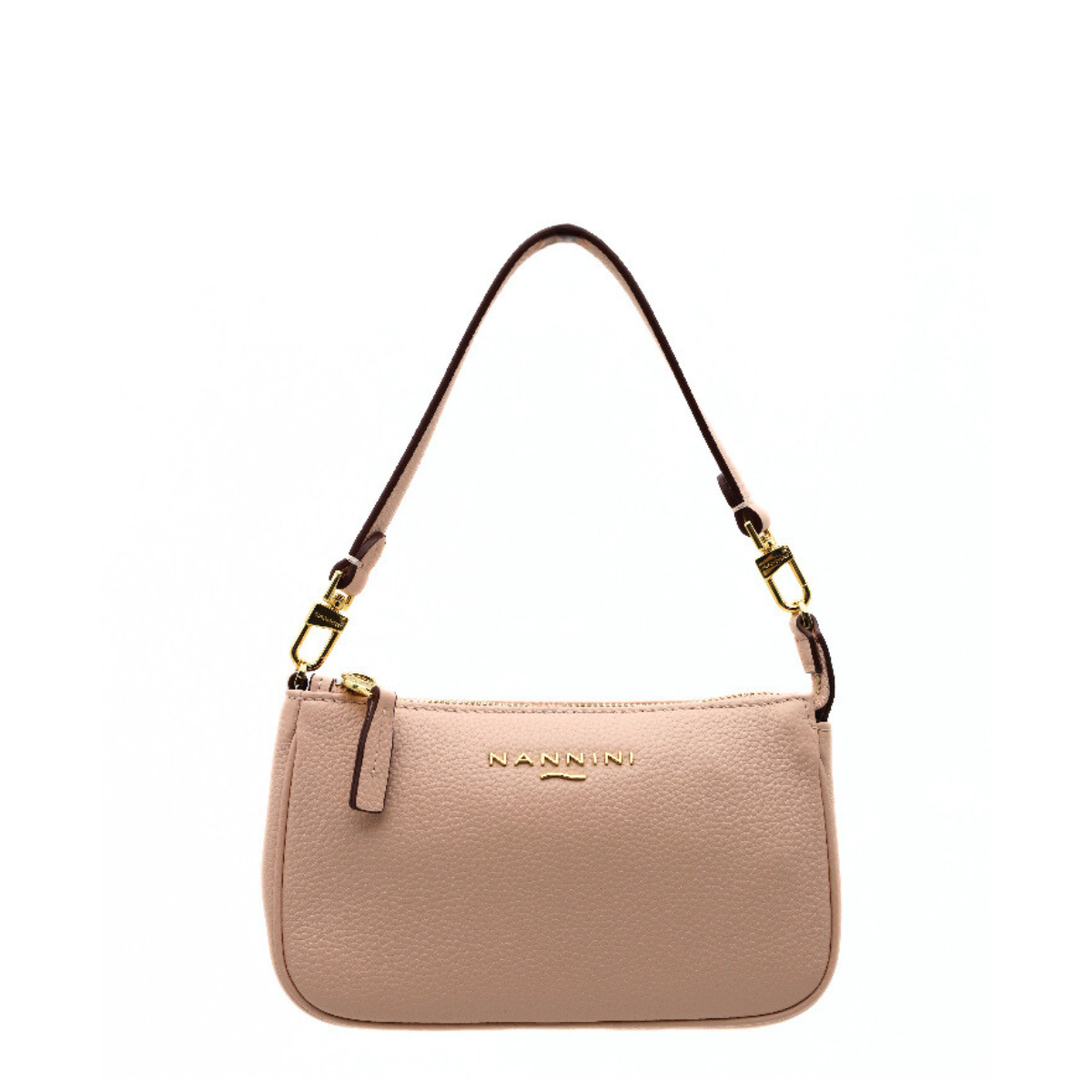Mini borsa di NANNINI, modello KEIRA, realizzata in pelle cipria. Tripla portabilità a mano, a spalla o a tracolla. Interno unico comparto con tasche di servizio. Chiusura con cerniera.