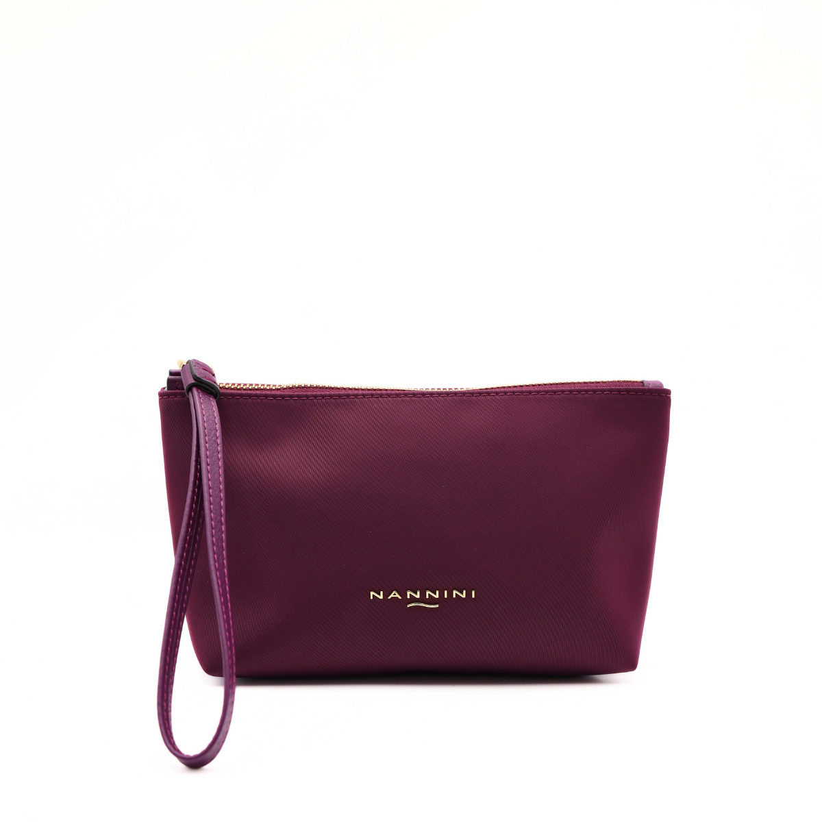 Bustina portatutto di NANNINI realizzata in tessuto viola. Unico comparto interno. Chiusura con zip.