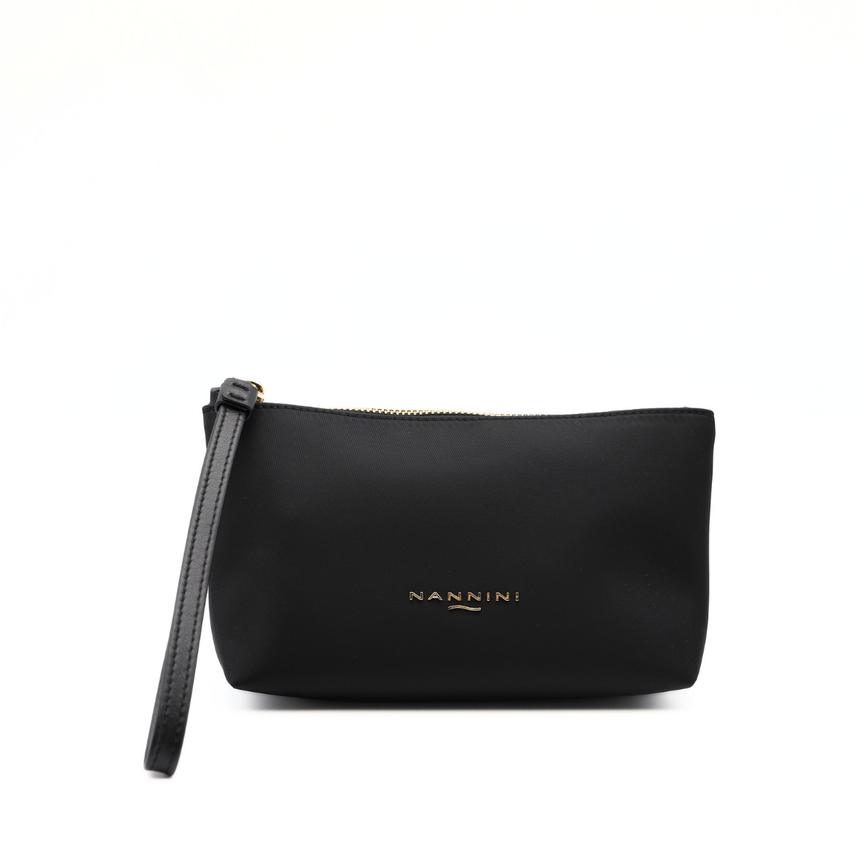 Bustina portatutto di NANNINI realizzata in tessuto nero. Unico comparto interno. Chiusura con zip.