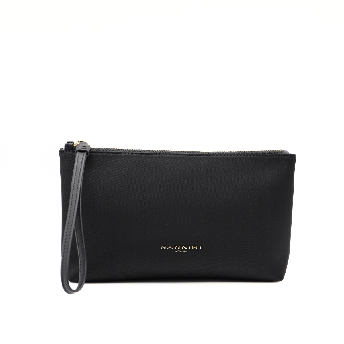 Bustina portatutto di NANNINI realizzata in tessuto nero. Unico comparto interno. Chiusura con zip.