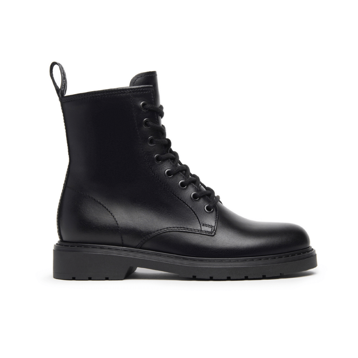 Anfibio di NERO GIARDINI, personalità e stile unico. Calzatura realizza in pelle nera con interno e sottopiede con tecnologia DryGo!®, assorbe l’umidità e garantisce confort e benessere, in pelle. Chiusura con laccio e zip interna. Suola in gomma.