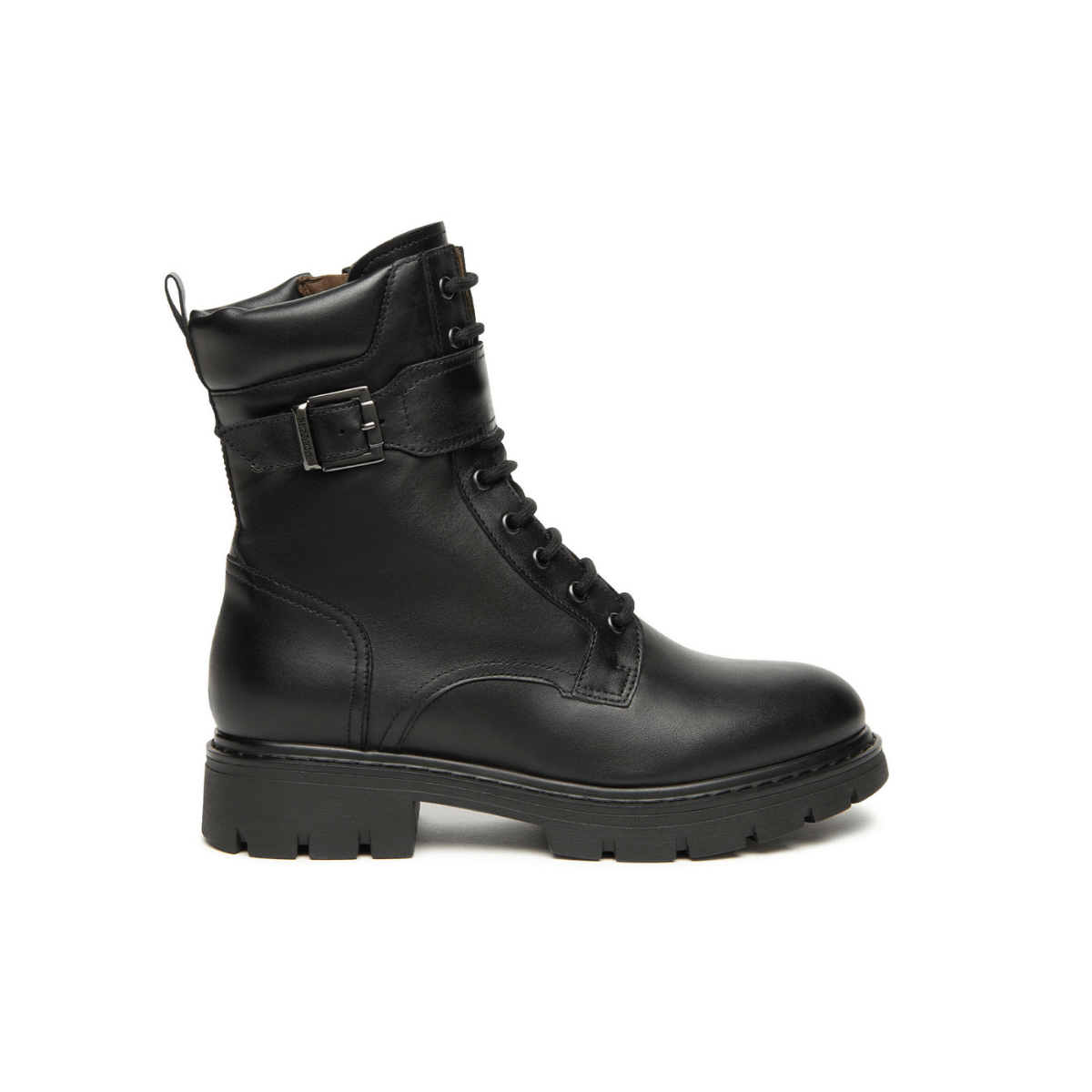 Anfibi di NERO GIARDINI realizzati in pelle di colore nero con suola carro armato e tacco di altezza 3 cm.