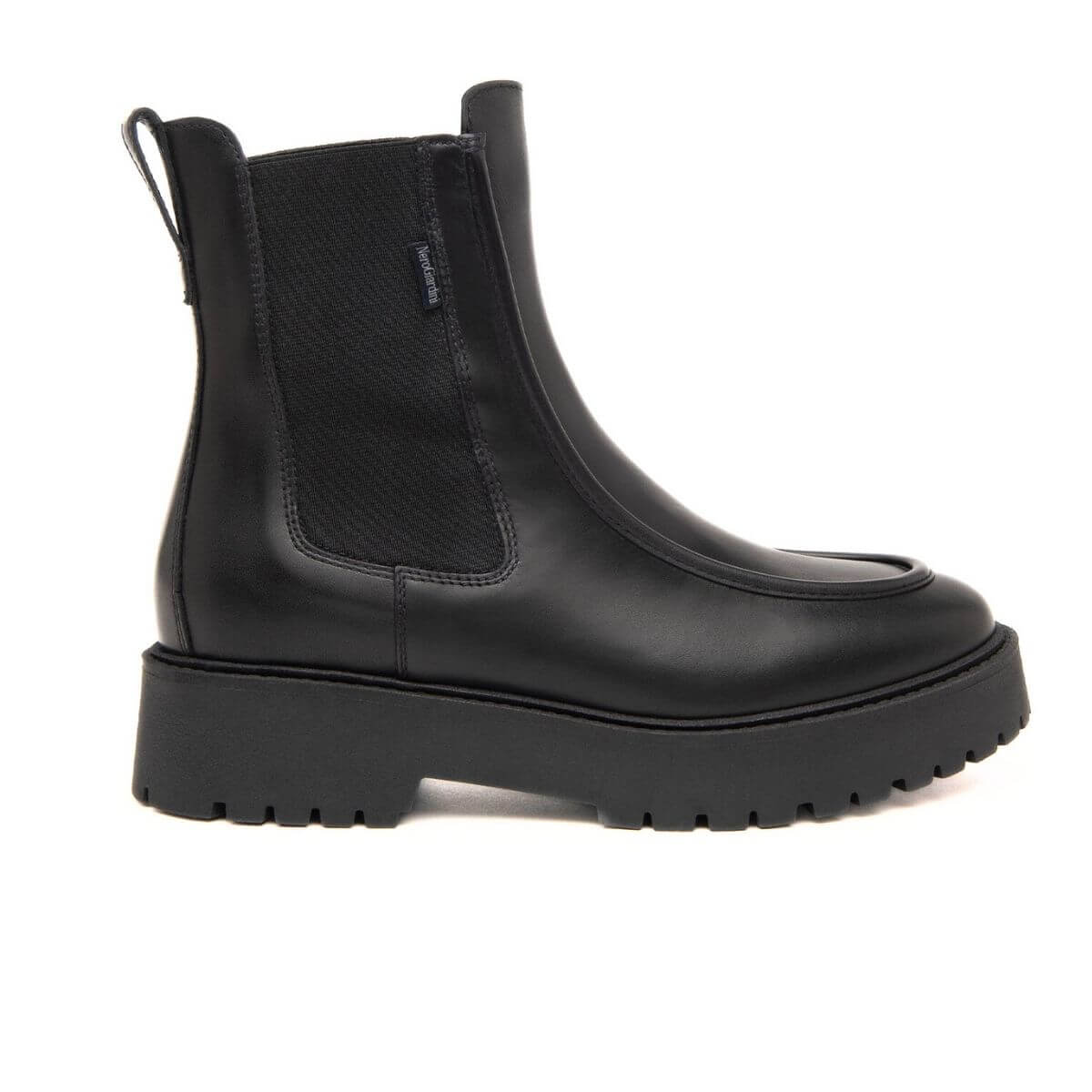 Stivaletto, modello beatles, di Nero Giardini, personalità e stile unico. Realizzato in pelle color nero con cuciture a vista e chiusura elastici laterali per una calzata veloce e semplice. Interno e sottopiede, non estraibile, in pelle. Suola in gomma carroarmato.