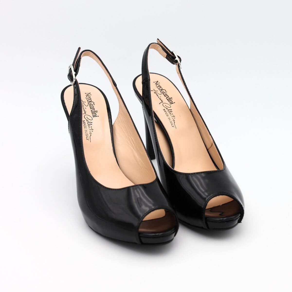 Elegante slingback donna di NERO GIARDINI. Tomaia realizzata in pelle nera con cinturino. Interno e sottopiede foderati in pelle. Suola in gomma con inserto antiscivolo. Calzatura classica ma sempre elegante.