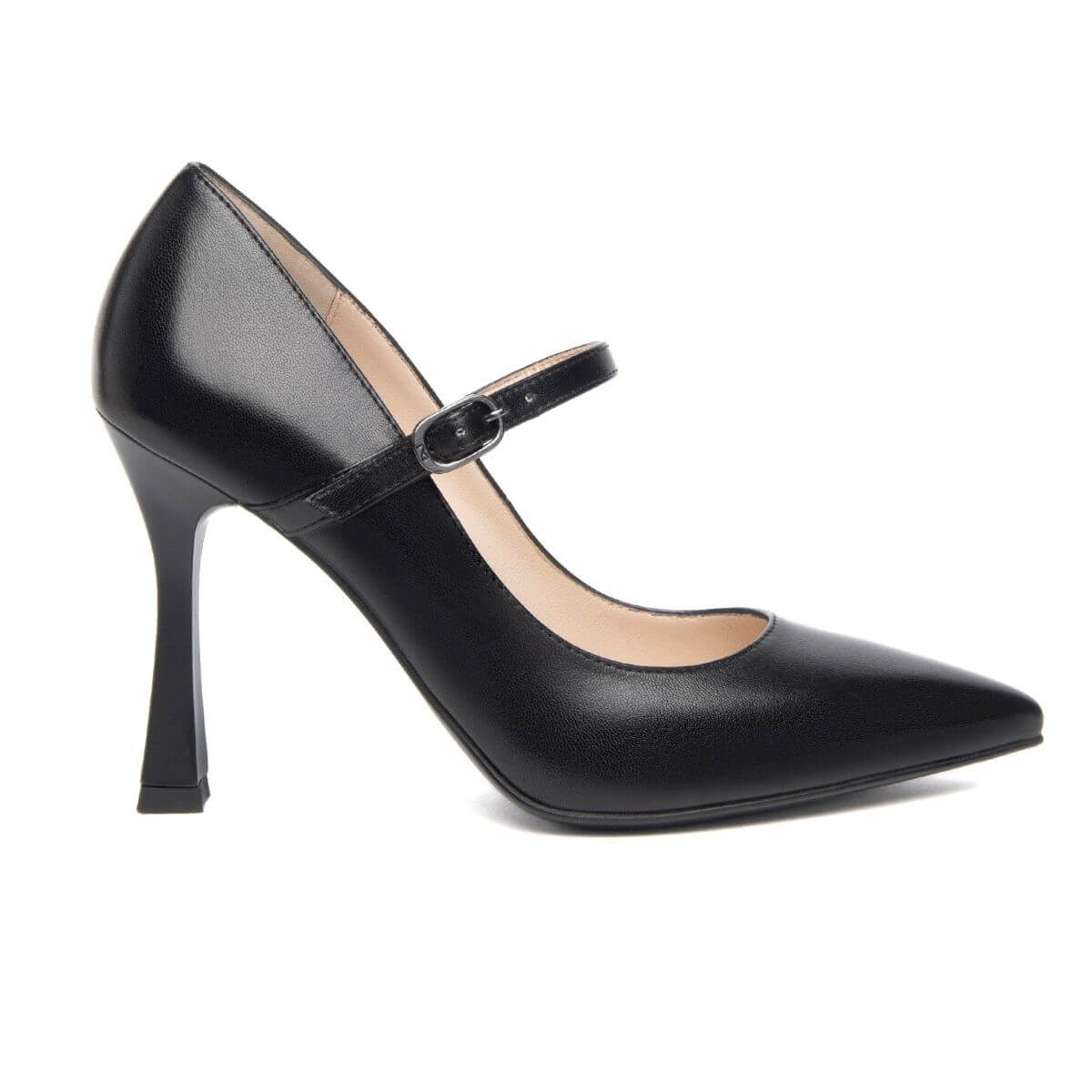Décolleté donna di NERO GIARDINI. Tomaia realizzata in pelle nera con cinturino regolabile sul collo del piede. Interno e sottopiede foderati in pelle. Suola in gomma con inserto antiscivolo.