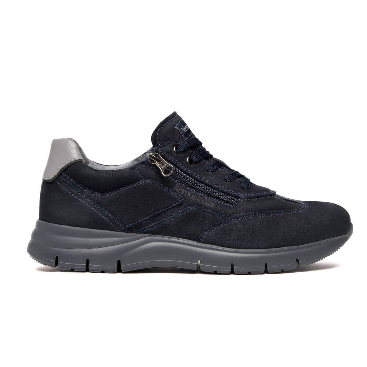 Sneakers da uomo di NERO GIARDINI, realizzata in nabuk blu con zip sulla chiusura. Interno e sottopiede, estraibile e con tecnologia DryGo!® che assorbe l’umidità e garantisce confort e benessere. Le calzature NeroGiardini Uomo si distinguono per il loro design minimale e raffinato, che le rende un vero e proprio must-have del guardaroba maschile. Perfette per essere abbinate a qualsiasi tipo di outfit, doneranno un tocco di classe e personalità ad ogni look.