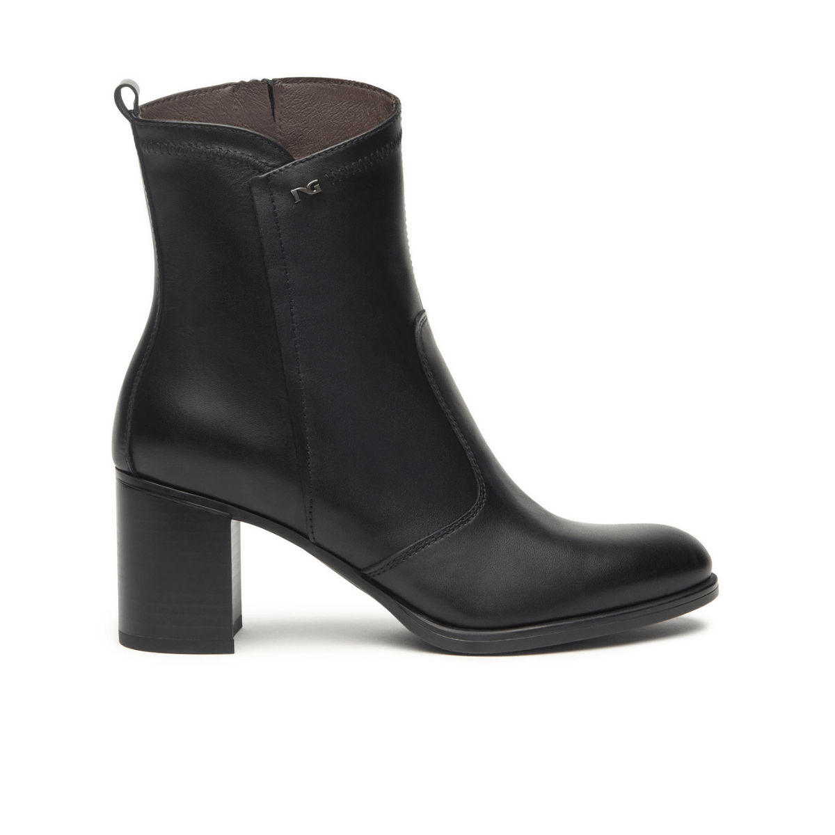Stivaletto di Nero Giardini, personalità e stile unico. Realizzato in pelle color nero con con chiusura con zip unilaterale. Interno e sottopiede, non estraibile, in pelle. Suola in gomma.