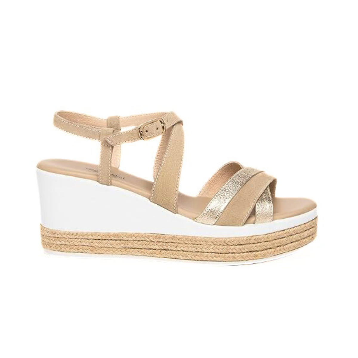 Zeppa di NERO GIARDINI con dettaglio in corda. Cinturini di pelle e altezza zeppa 7 cm.