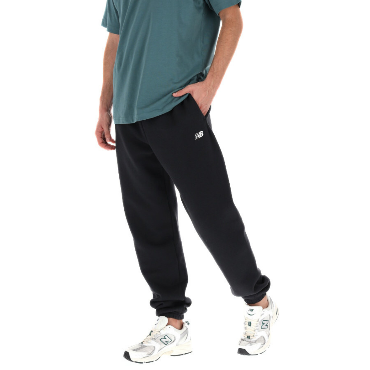 Pantalone della tuta da ginnastica da uomo di NEW BALANCE realizzata in cotone nero con interno felpato. Chiusura in vita con elastico e couliss.