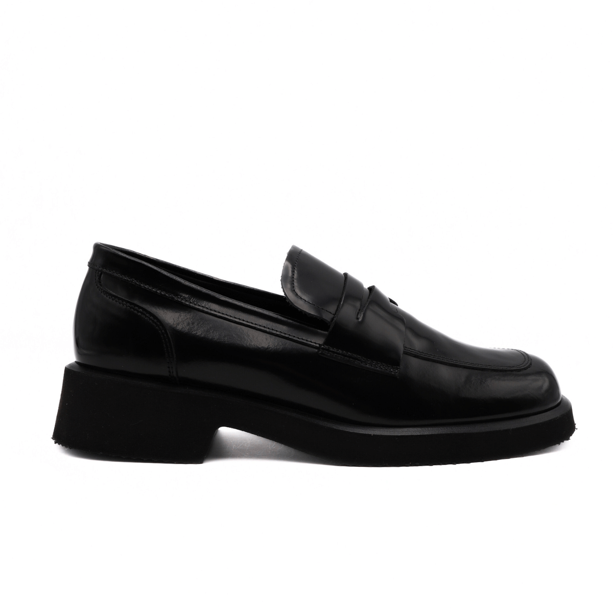 Mocassino da donna di POESIE VENEZIANE realizzato in pelle nera con mascherina. Interno e sottopiede, non estraibile, in pelle. Suola in gomma (3,5cm).