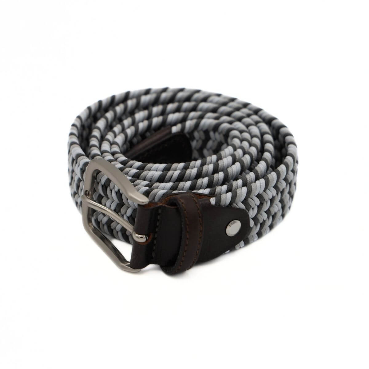 Cintura da uomo di PRATENICE in tessuto elastico intrecciato tris di grigi.