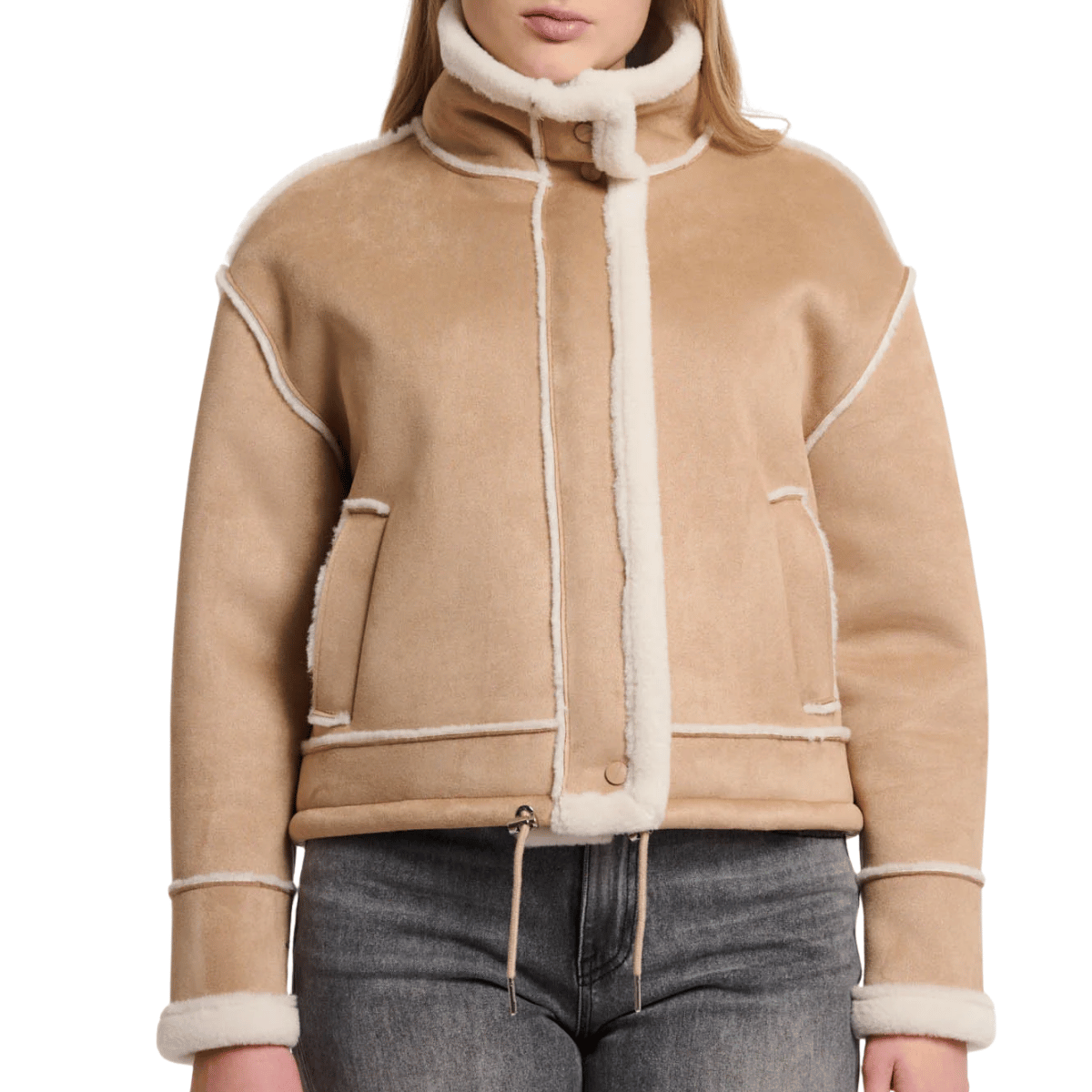 La giacca montone Beck Misty Nude di RINO&PELLE è realizzata in morbido faux-suede (finto camoscio) effetto lammy, con interno in soffice ecopelliccia per un comfort eccezionale.