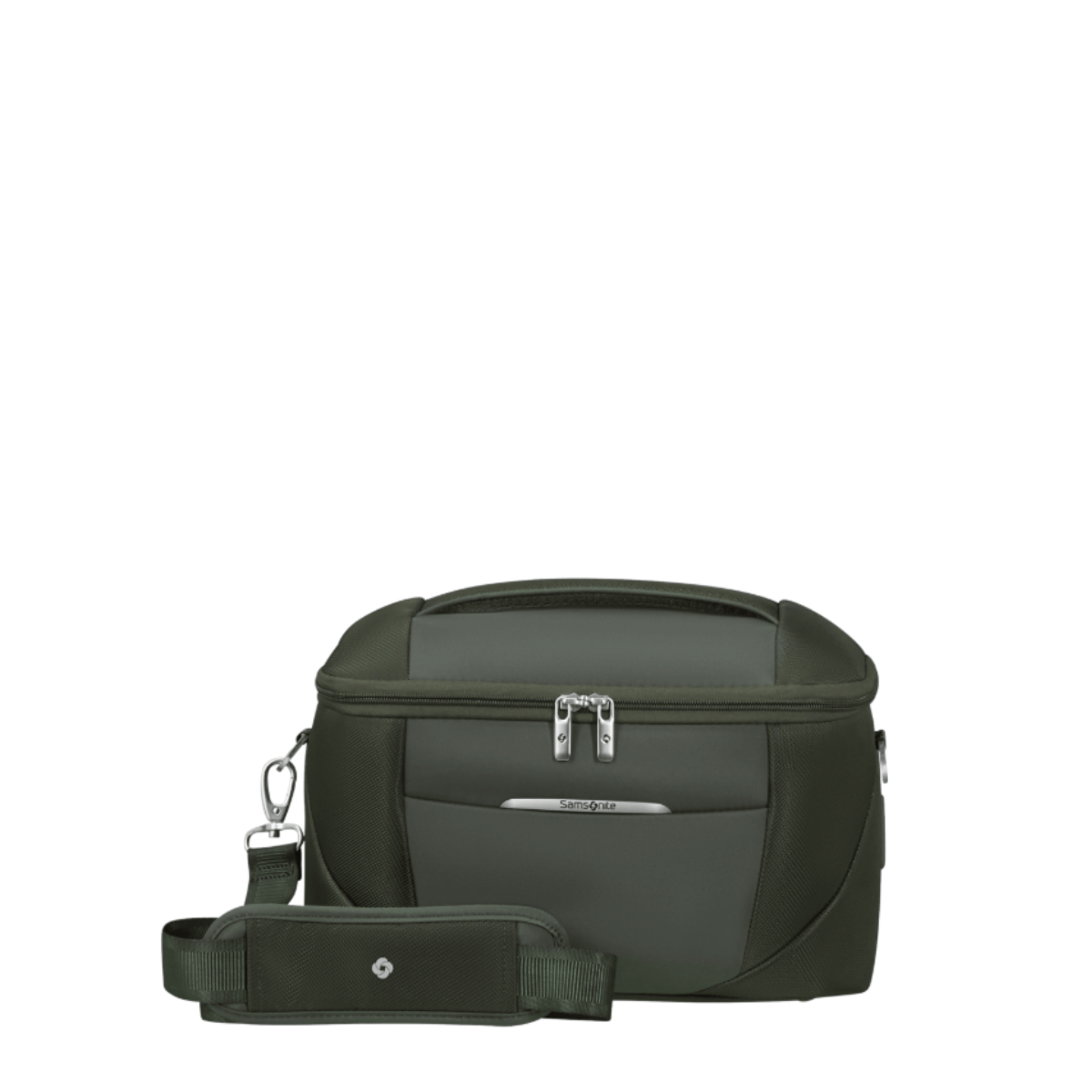 Beauty case di SAMSONITE della linea RE-LITE. Realizzato in poliestere verde, interno suddiviso in due scomparti con tasche accessorie, bustina salva liquidi integrata. Chiusura con zip e tracolla regolabile e removibile. Funzione smart sleeve per portarlo comodamente con la tua valigia.