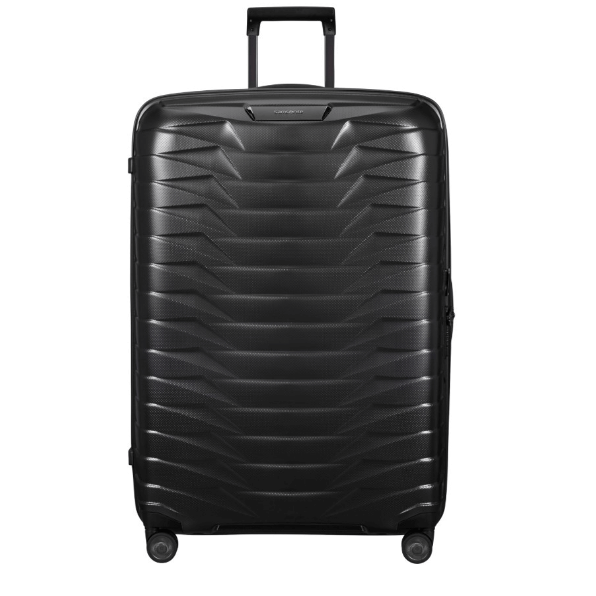 Trolley medio-grande rigido, della linea PROXIS di SAMSONITE dal design unico e avanzate tecnologie color grigio scuro opaco. Realizzato in materiale Roxkin™ polipropilene, materiale innovativo altamente flessibile in caso di impatto e molto resistente. Ritorna in forma facilmente. Vano interno organizzato con divisorio e cinghie elastiche. Chiusura con combinazione e sistema TSA. Quattro ruote bidirezionali. Carrello bitubo.