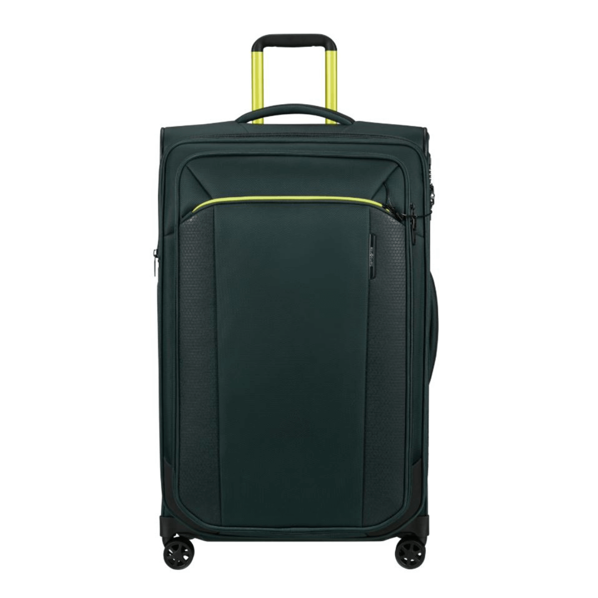 Trolley grande di SAMSONITE della linea RESPARK. La fodera interna e le cinghie interne sono realizzate con PET 100% riciclato post-consumo, parte del nostro Recyclex™ Material Technology Initiative. Unico vano porta abiti. Tasche esterne porta oggetti. Quattro ruote. Carrello bitubo. Chiusura TSA con cavetto.