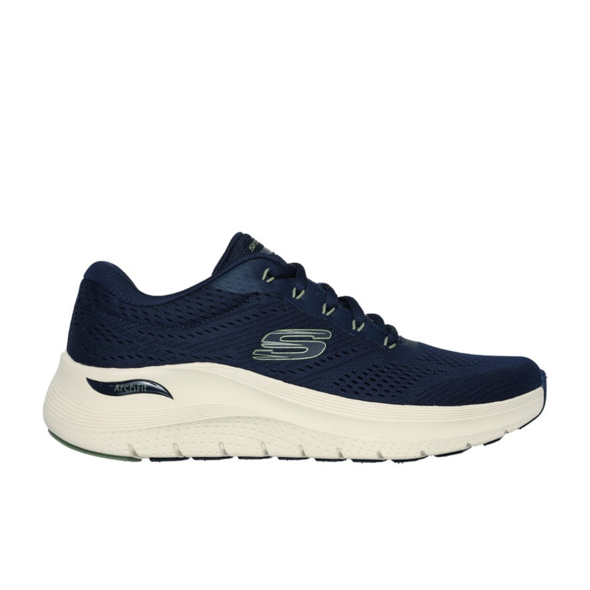 Sneakers da uomo di SKECHERS modello Arch Fit. Presentano una tomaia in tessuto mesh blu con soletta Arch Fit® rimovibile. Interno foderato in tessuto. Chiusura con lacci, e suola in gomma.