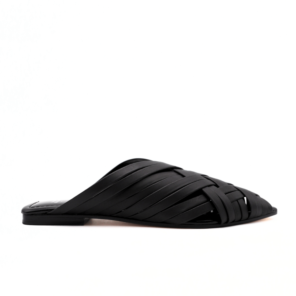 Ciabatta da donna di SPAZIO CORRIDONI. Tomaia realizzata pelle intrecciata nera. Interno e sottopiede, foderati in pelle. Suola in cuoio. Ideale per le tue giornate estive.