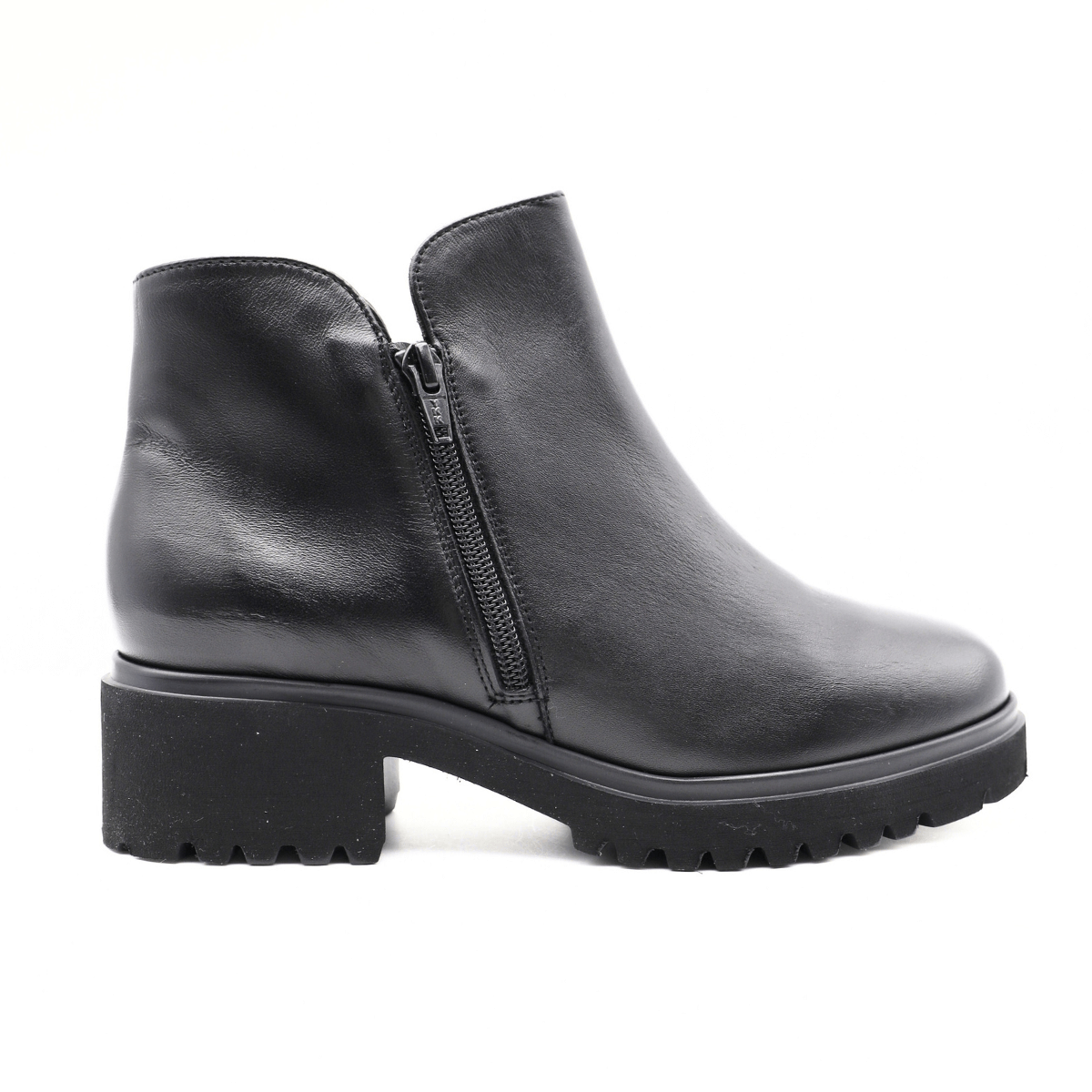 Stivaletto da donna di FRATELLI TOMASI in pelle nera con doppia zip bilaterale. Interno realizzato in pelle con morbido sottopiede estraibile. Suola in gomma (altezza tacco: 4cm)