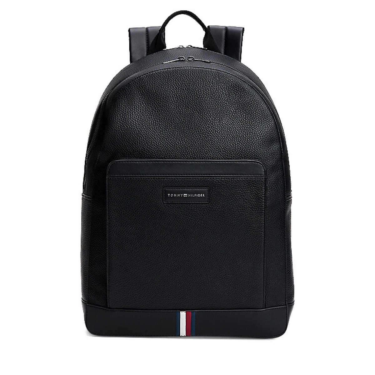Zaino da uomo di TOMMY HILFIGER realizzato in similpelle bottalata con logo frontale. Interno unico comparto con tasche accessorie, una custodia per laptop e numerose fessure per carte di credito e penne. Spallacci imbottiti regolabili.