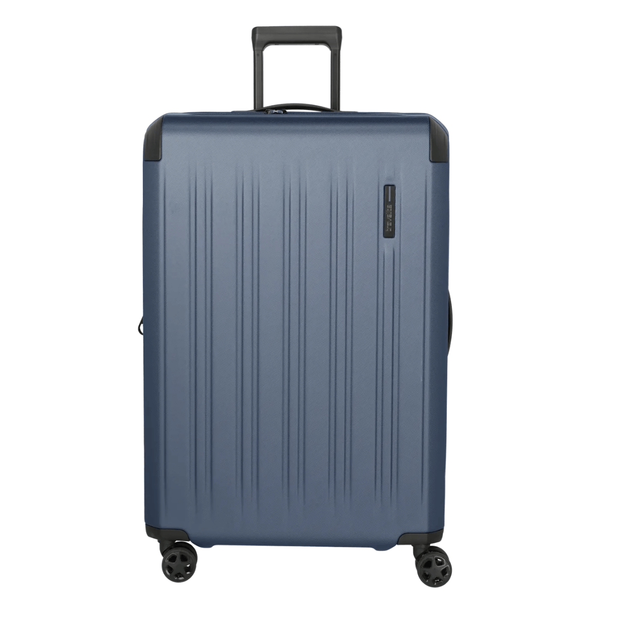 Trolley grande DYNAMIC di TRAVELITE, realizzato in ABS, robusto e resistente con superficie antigraffio, angoli rinforzati per una maggiore protezione. Doppio divisorio con fettuccia ferma abiti attaccata al fondo. Quattro ruote doppie e serratura a combinazione TSA incassata. Manico telescopico robusto e bloccabile. Manico sul fondo. Valigia espandibile.