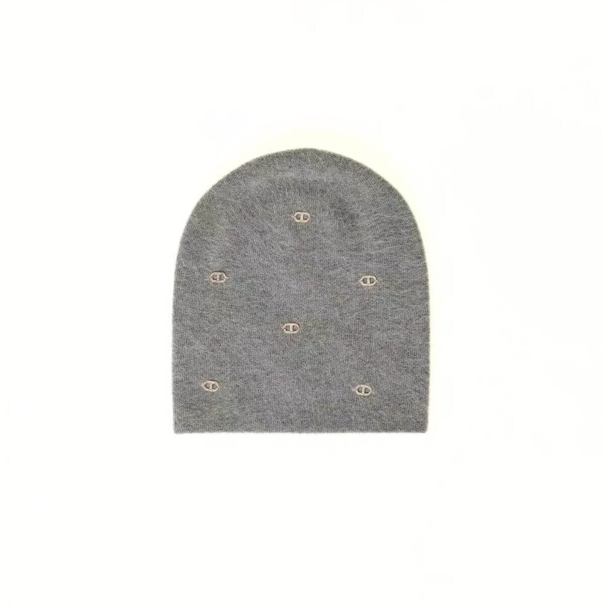Berretto in maglia soffice effetto mohair con placchette logo Oval T all over in metallo con strass di TWINSET.
