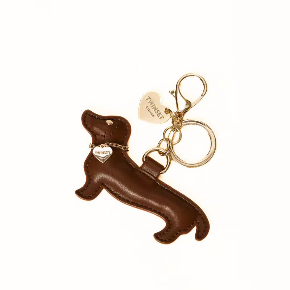 Charm portachiavi di TWINSET effetto pelle liscia con sagoma a forma di bassotto. Ha moschettone, anello e charm Oval T in metallo color oro.