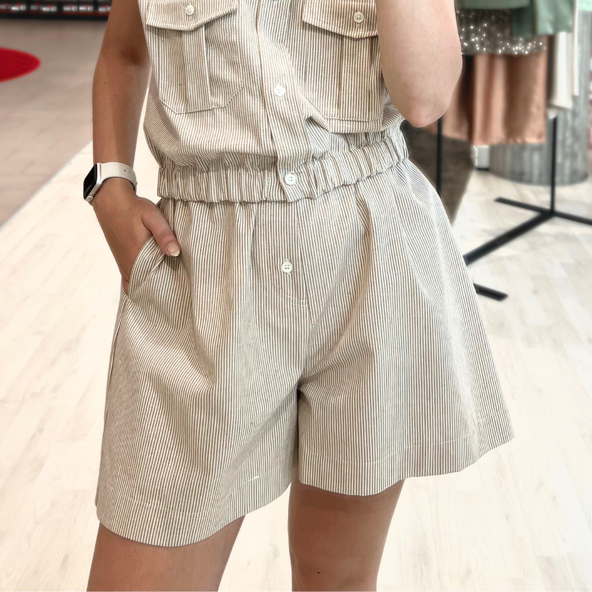 Pantalone corto tipo bermuda a righe verticali beige e bianche di VICOLO.