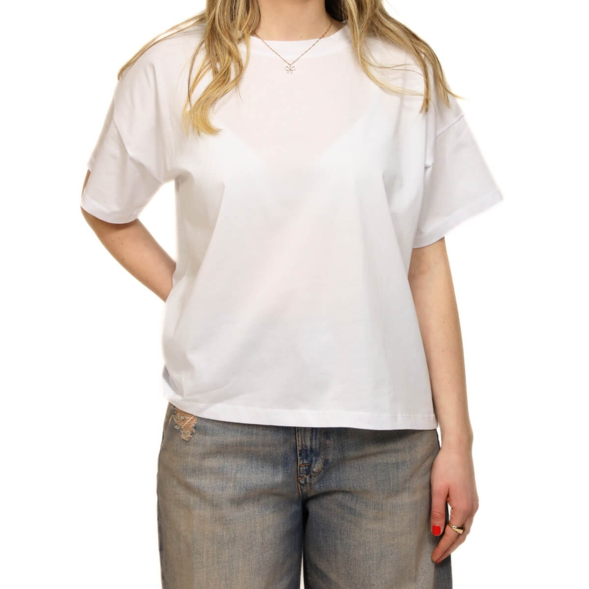 Il colore bianco la rende estremamente versatile, facile da inserire in qualsiasi guardaroba e perfetta quando si vuole mantenere uno stile pulito e senza eccessi.
